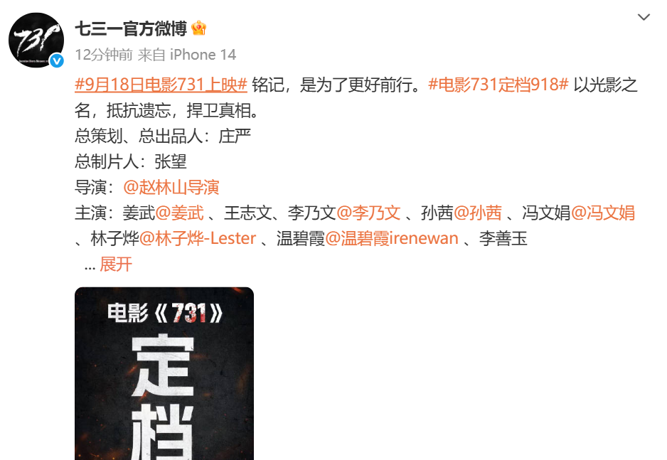 电影《731》定档于9月18日上映,影片深刻再现731部队罪行,让观众认识历史残酷,具有极高教育意义和历史价值,吸引众多影迷关注。