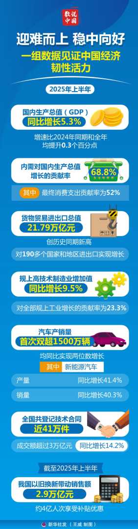 2025年上半年,面对复杂严峻的外部环境,我国经济顶住压力,主要经济指标表现良好,高质量发展取得新成效,展现国内财经的强大韧性和活力。