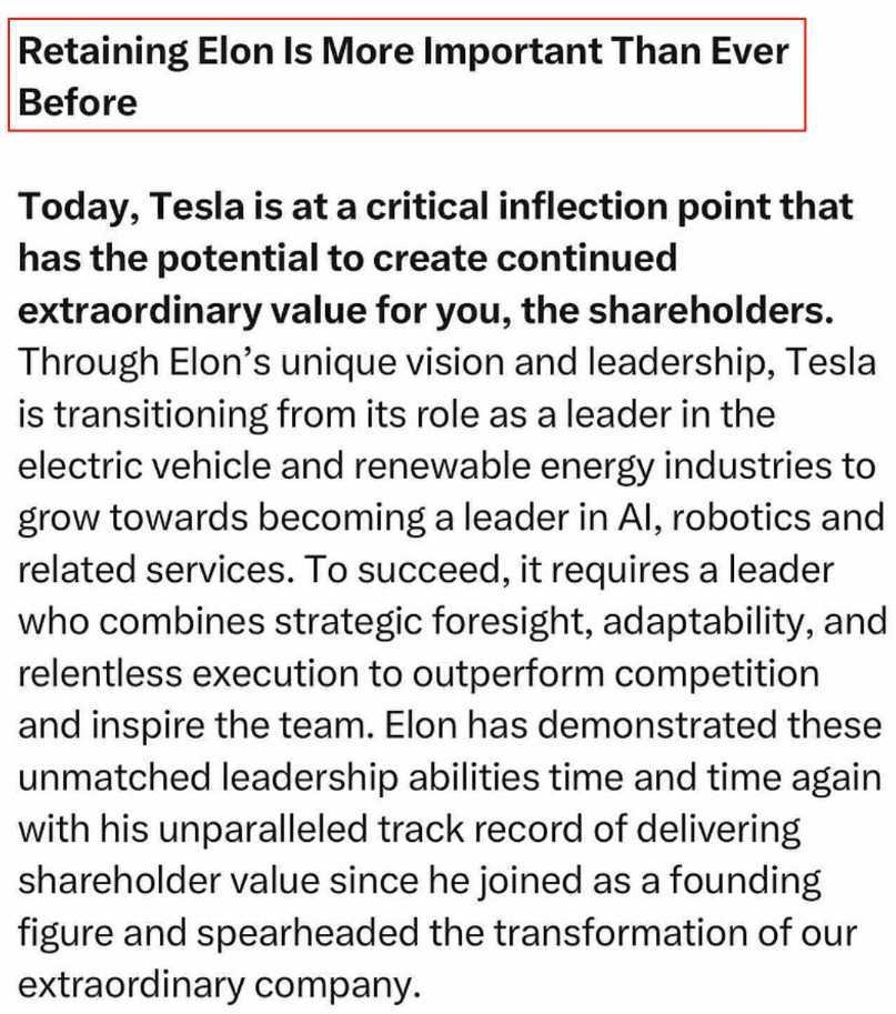 另外,特斯拉特别委员会向股东发布信函,宣布在补偿马斯克在特斯拉所做的非凡工作方面迈出重要一步。