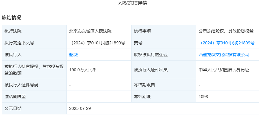 近日,演员赵薇所持多家公司股权被冻结,总额达1590万人民币,冻结期限3年。其商业版图近年不断收缩,名下关联16家公司,部分股权已被冻结,并新增被执行人信息。