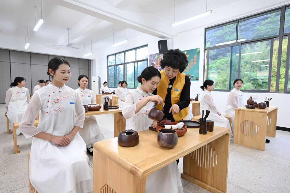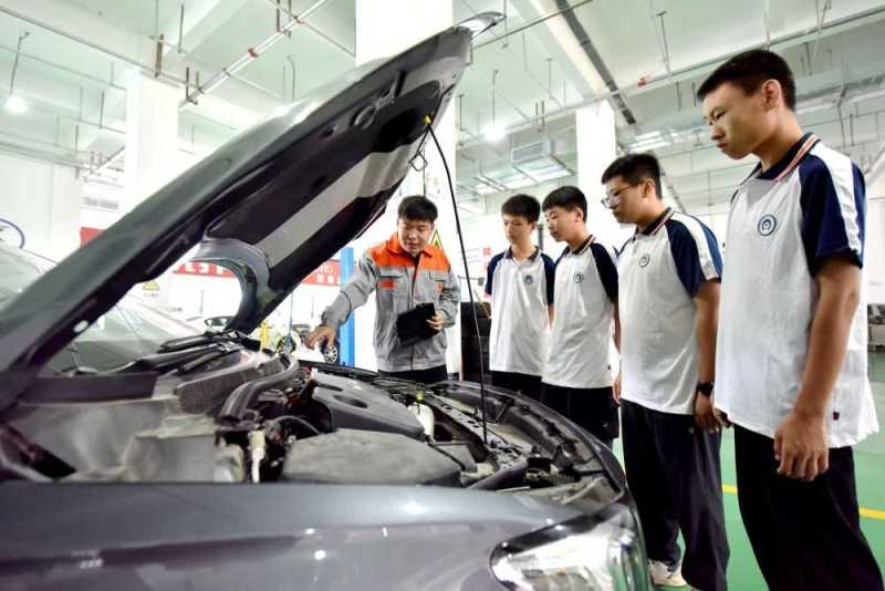 深化职普融通、产教融合,加快构建现代职业教育体系,让不同禀赋的学生可以多次选择、多种选择,实现终身学习、个性化发展、多样化成才。2023年6月25日,蓝田厨师学校教师指导学生们练习翻勺。2024年6月7日,河北省邢台市威县职业技术教育中心教师指导学生学习汽车维修技术。2024年11月12日,天津现代职业技术学院老师指导学生。2025年5月8日,福建省武夷山旅游职业中专学校的茶艺老师在教授茶艺。