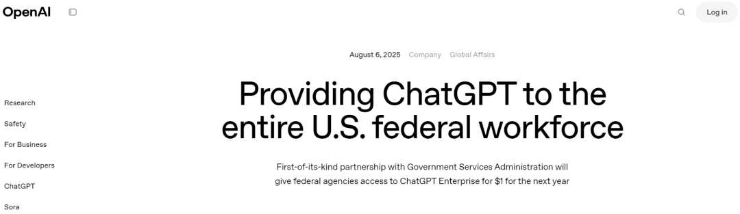 OpenAI向美联邦机构提供ChatGPT企业版 推动AI普惠全民