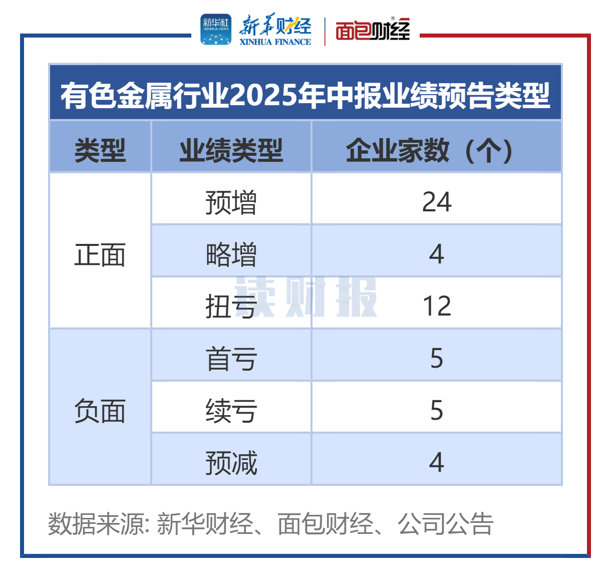 新华财经北京8月7日电截至最新数据,根据申万行业分类,A股有色金属行业共计141家公司,其中54家公司已公布2025年上半年业绩预告。