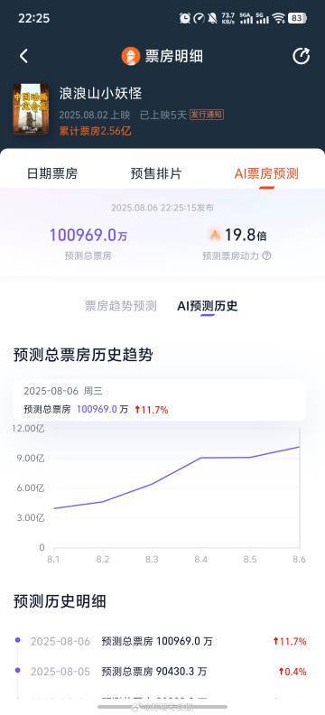 据灯塔专业版AI票房预测,《浪浪山小妖怪》预测总票房连续5日上调至10.10亿,彰显影片强大吸引力,预示电影市场持续回暖,有望成年度票房黑马。