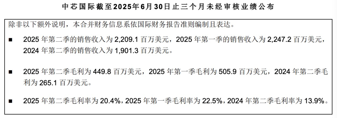 中芯国际港股发布的第二季度财报显示,公司今年第二季度的销售收入为22.09亿美元,环比今年第一季度的营收22.47亿美元下降1.7%,同比2024年第二季度的营收19.01亿美元增长约16.2%。