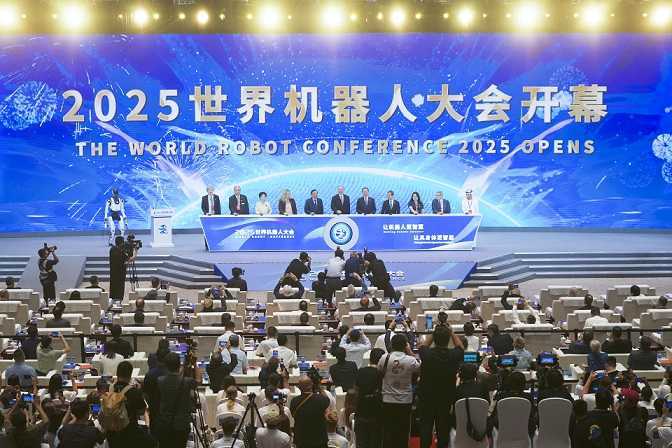 8月8日,嘉宾为2025世界机器人大会揭幕。当日,以“让机器人更智慧,让具身体更智能”为主题的2025世界机器人大会在北京经济技术开发区开幕。此次大会汇聚了全球目光,由中国电子学会、世界机器人合作组织共同主办,吸引了全球200多家企业参展,带来了1500余件前沿展品,充分展示了机器人领域的最新成果与技术创新。新华社记者谢晗摄