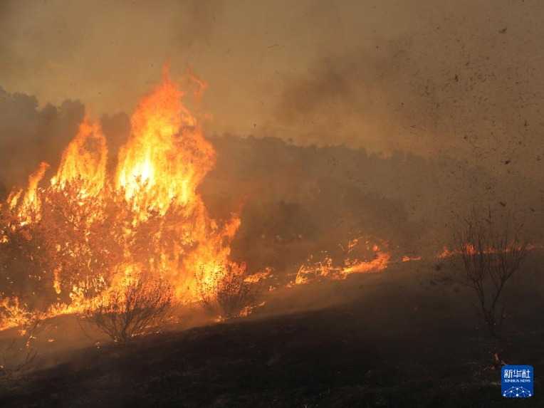 这是8月7日在美国加利福尼亚州文图拉县拍摄的山火现场,火势凶猛。