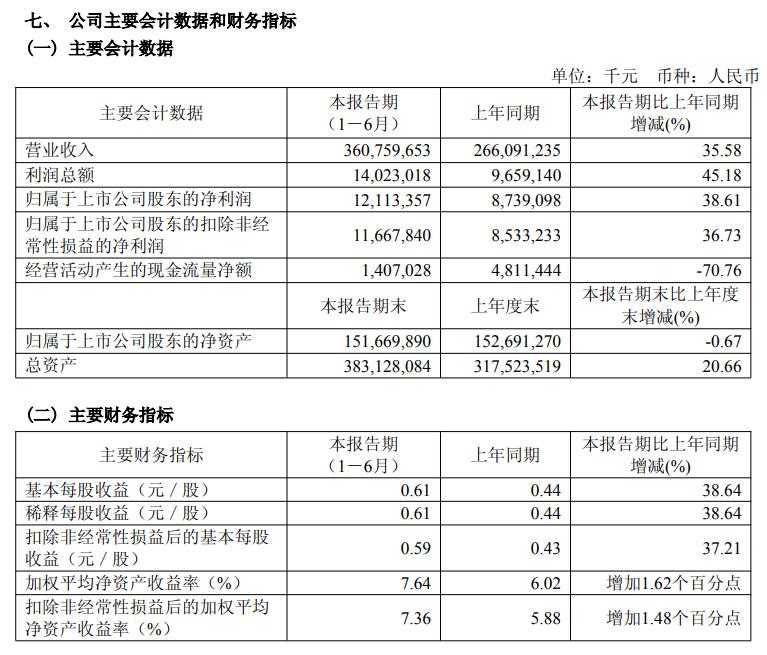 工业富联上半年营收达3607.6亿元,同比增长35.58%;净利润121.1亿元,同比增长38.61%,业绩表现强劲,未来发展可期。