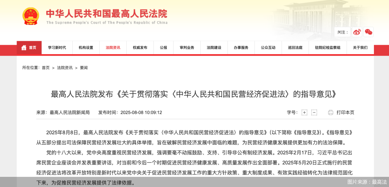 最高人民法院发布《指导意见》,针对民营企业融资贵问题,提出依法规制高利贷、砍头息等,规范金融机构放贷行为,助力拓宽融资渠道,降低融资成本,保护民营企业合法权益。