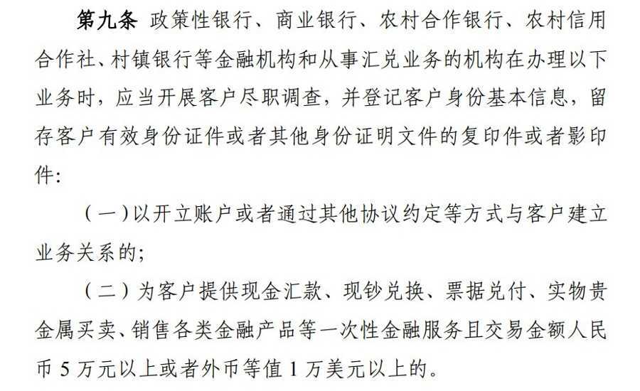 此外,在为客户提供现金汇款、实物贵金属买卖等等一次性交易金额业务超过5万元的,金融机构应当开展尽职调查,并登记客户身份基本信息,留存客户有效身份证件或者其他身份证明文件的复印件或者影印件,以确保金融交易的安全性和合规性。