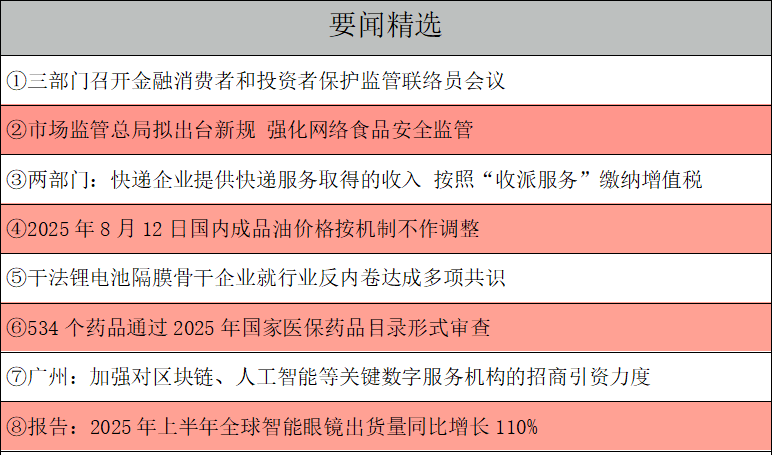 【摘要】服务业经营主体贷与个人消费贷享贴息,银行响应;金融消费者和投资者保护会议召开;网络食品安全监管将强化;干法锂电池隔膜企业反内卷达成共识;快递企业增值税缴纳规定明确;中国恒大取消上市地位;寒武纪否认不实信息;美股三大指数均涨超1%,纳指创历史新高。