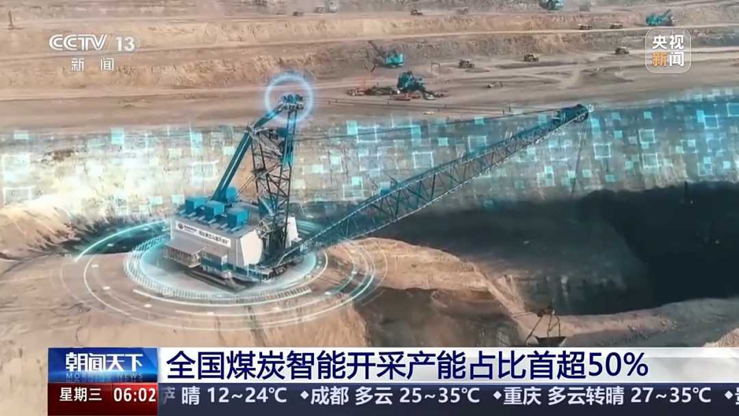 中煤协会数据显示:全国已建成智能煤矿907处、智能工作面1806个,智能开采产能占比首超50%,替代1.6万余个高危岗位。