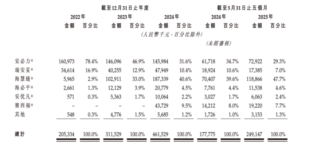靠仿制药赚钱,面临VBP到期风险。根据招股书,海西新药是一家双轨制发展的医药公司,目前拥有获得国家药监局批准的14款仿制药及四款在研创新药管线,已经商业化的产品主要包括用于消化系统疾病、心血管系统疾病、内分泌系统疾病、神经系统疾病及炎症疾病的仿制药。2022年、2023年、2024年及2025年前5个月,海西新药实现营收分别为2.12亿元、3.17亿元、4.67亿元及2.49亿元;净利润分别为6898.1万元、1.17亿元、1.36亿元和9020.9万元。