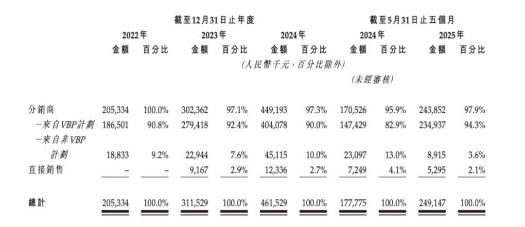 分销是海西新药最主要的销售渠道。2024年,分销商销售金额为4.49亿元,占海西新药销售总额的比重为97.3%。其中,来自VBP计划的销售金额为4.04亿元,占海西新药销售总额的比重为90%。所售药品进入国家药品集中带量采购名单对于海西新药极为重要。海西新药表示,如果相应产品被剔除出VBP名录或其他政府资助的医保计划,公司的业务、运营业绩及财务状况可能会受到不利影响。
