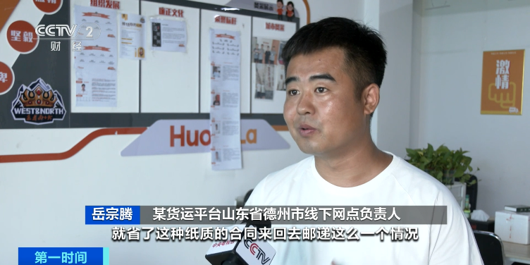 某货运平台山东省德州市线下网点负责人岳宗腾:从后台发起申请,总部直接在申请表上盖电子章,省了纸质合同来回邮递的情况。司机从平台App上能够直接提交申请,也能在线上补充资料,如果司机配合的话,当天就可能给他提交完整资料流程。