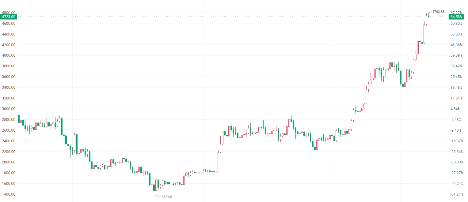 消息方面,北京时间周四早间,比特币价格一度突破12.4万美元,刷新历史纪录;以太坊同步走强,逼近4800美元关口这个2021年底以来高位。