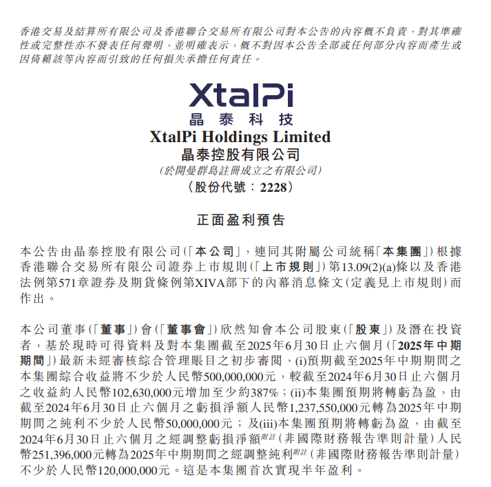 领涨的晶泰控股近日发布公告称,预期2025年上半年综合收益不少于5亿元人民币,同比大幅增加至少约387%;更值得关注的是,集团预期将转亏为盈,实现纯利不少于5000万元人民币。
