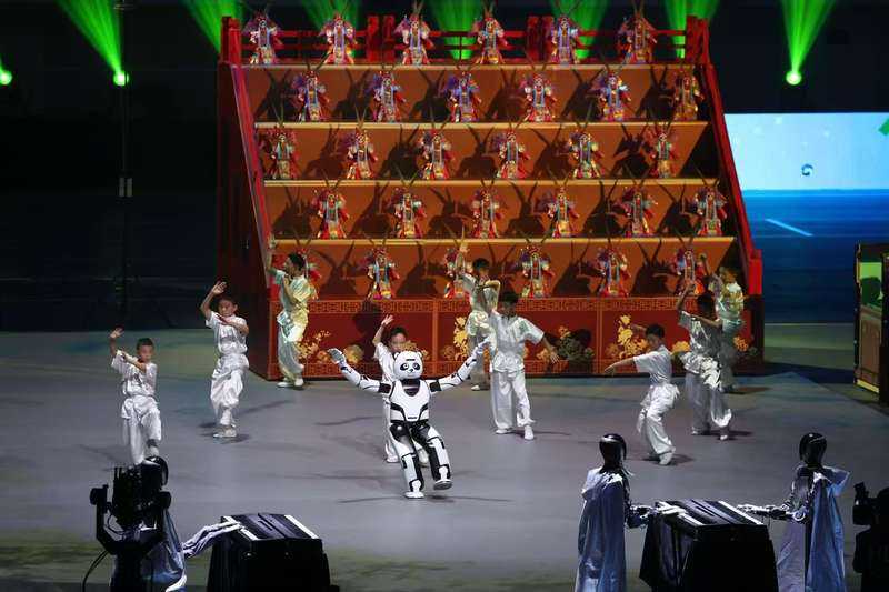 开幕式上,超百支战队闪耀“冰丝带”,机器人街舞、戏曲等节目轮番登场,更与专业街舞团联袂献艺。当万千光束汇聚于“智芯”水晶装置,智能传承的星火就此点亮。