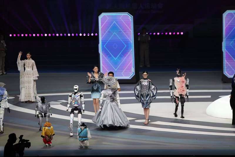 服饰走秀节目《天工霓裳》则将非遗技艺与未来设计完美融合。天工机器人身披牡丹芍药纹样服饰,松延动力机器人演绎土楼文化意象,展现具身智能在时尚领域的应用潜力。