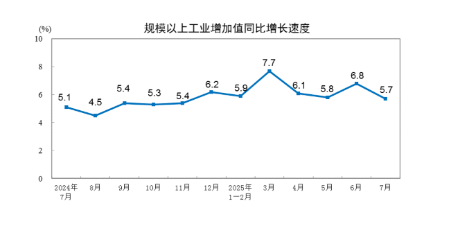7月规模以上工业增加值稳健增长,同比达5.7%
