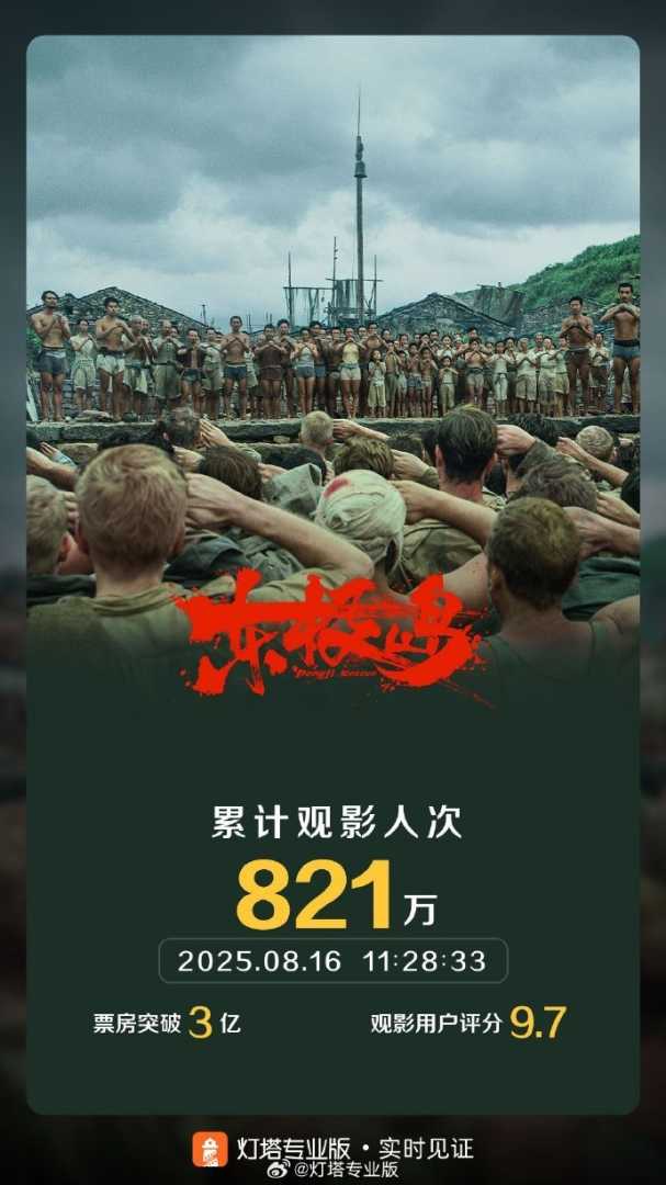 据灯塔专业版实时数据,截至8月16日11时28分,《东极岛》票房已突破3亿,展现了影片的广泛受欢迎程度及当前电影市场的活跃与繁荣。