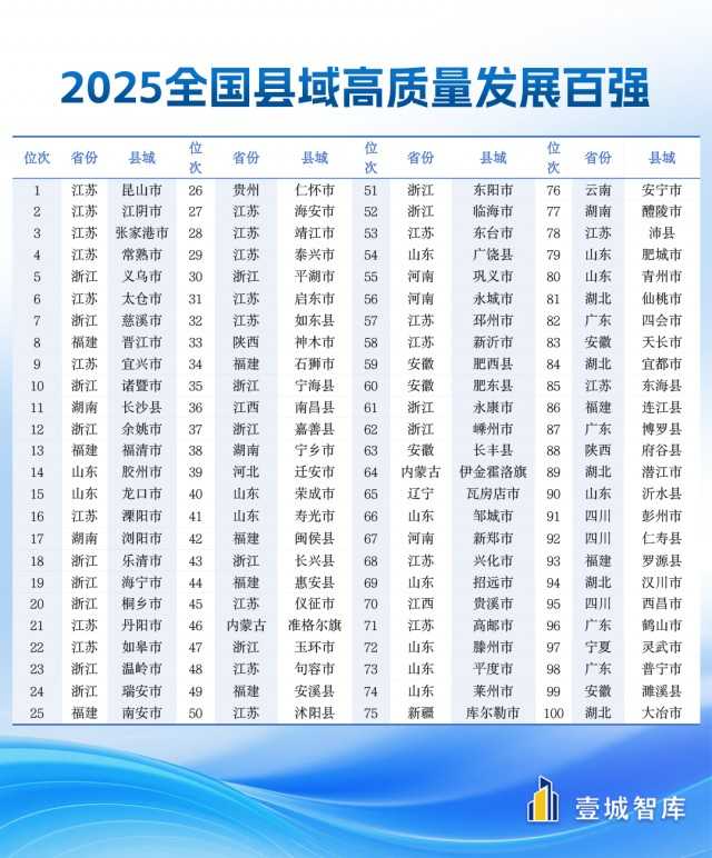 8月16日,“中国县域/市辖区高质量发展研讨会2025”在京举行,壹城经济咨询中心发布《中国县域高质量发展报告2025》。报告主题为“‘十五五’时期县域经济社会发展:趋势研判、路径优化与政策创新”,分析了“十四五”以来中国县域发展特点,探讨“十五五”趋势,明确高质量发展路径和策略,并揭晓“2025中国县域高质量发展百强”。
