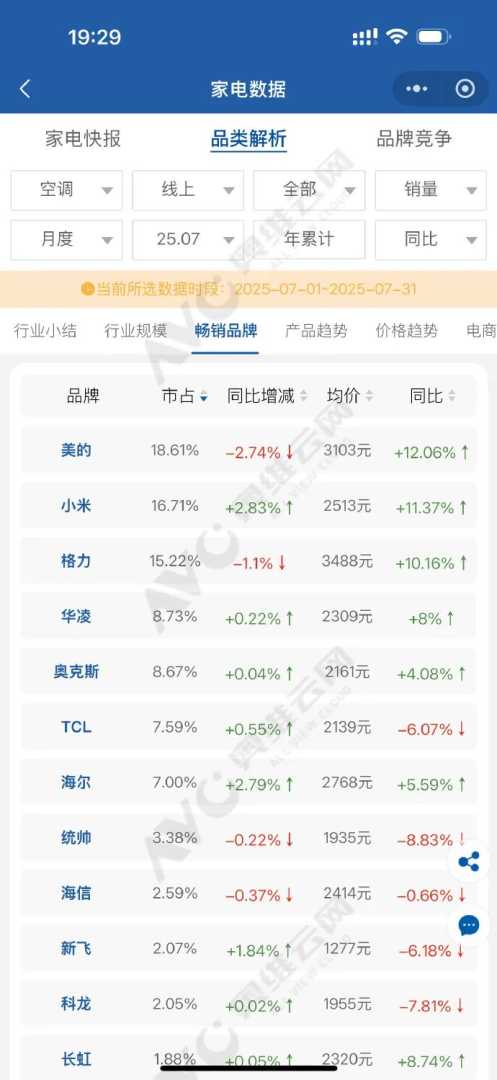 2025年7月空调市场:小米销量增速领先,目标行业前三