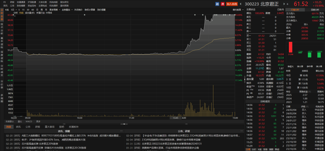 近期,Sora的火爆让新技术、新概念备受市场青睐。2月20日,北京君正股价在尾盘突然飙升,一举实现20CM涨停。这一涨停的背后,SRAM(静态随机存取存储器)概念成为了关键驱动力。