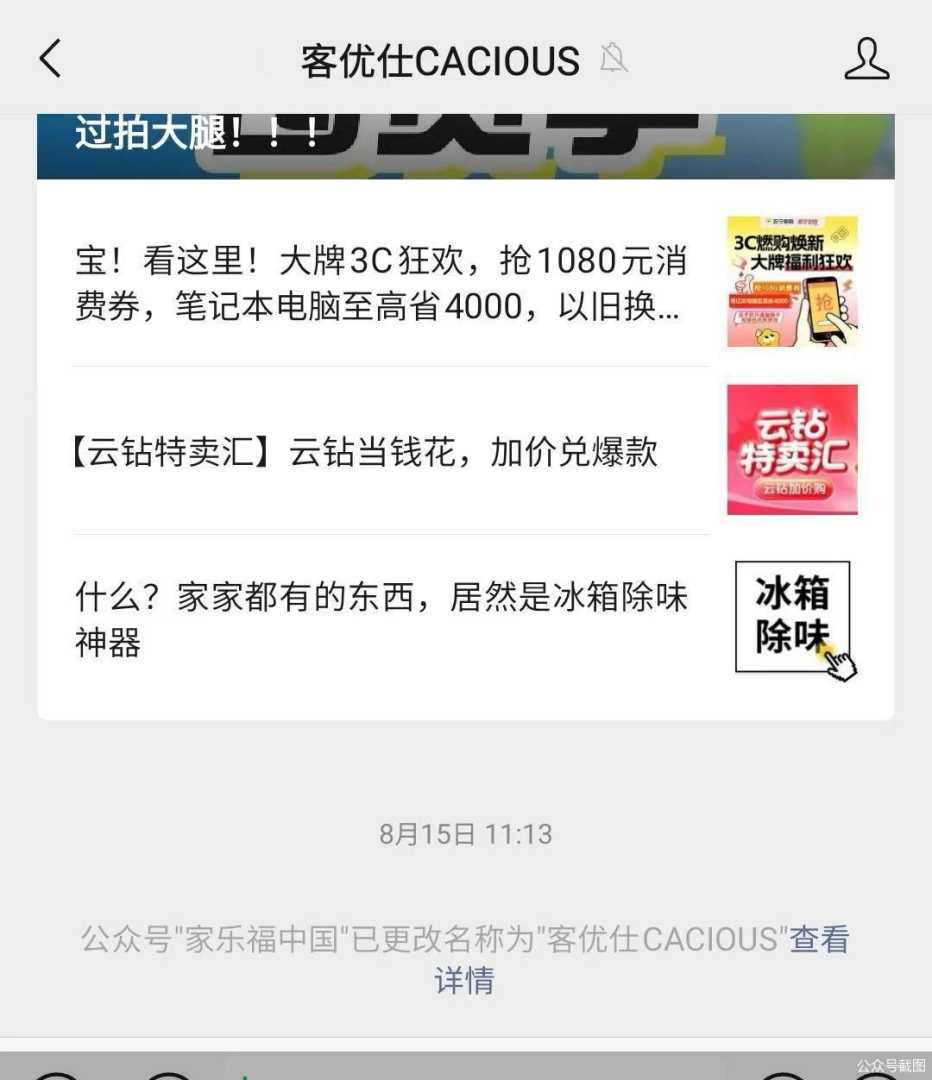 家乐福在中国的退场拉开了序幕。北京商报记者观察发现,家乐福的微信服务号“家乐福中国”更名为“客优仕CACIOUS”,此次更名同时伴随着品牌LOGO的更换,新LOGO为“客优仕CACIOUS”标识。据了解,该账号于2017年5月10日注册为“家乐福中国”,“客优仕”为家乐福会员店自有品牌。
