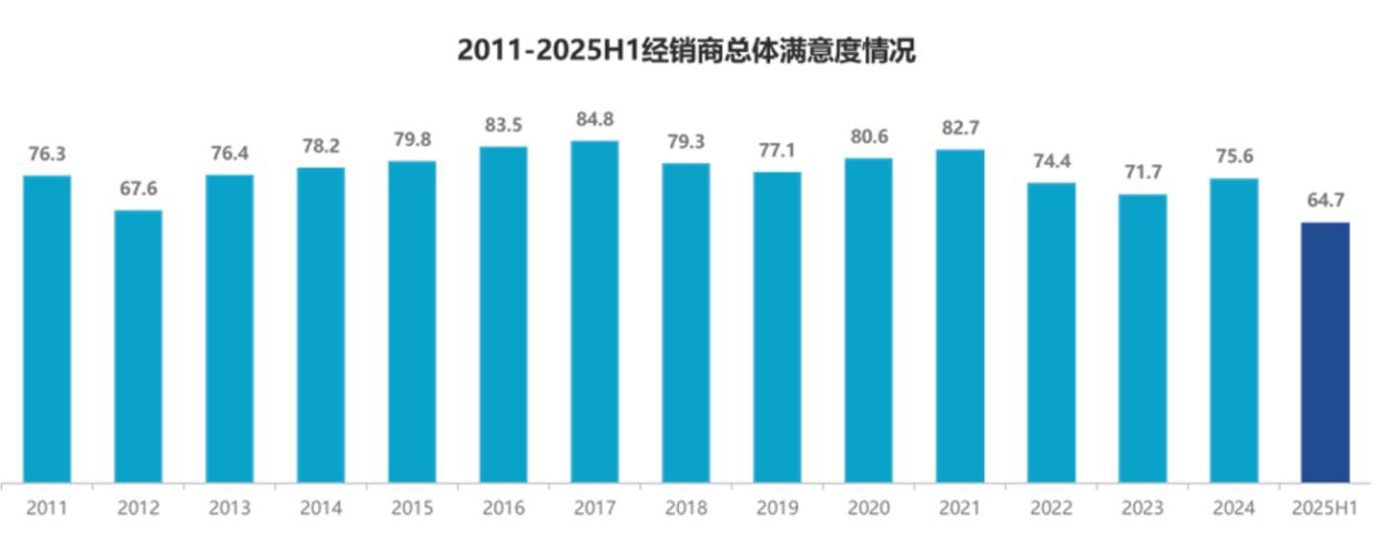 重压之下,汽车经销商对主机厂的满意度再度下滑。展望2025年,经销商对总体趋势判断为微增长或持平。
