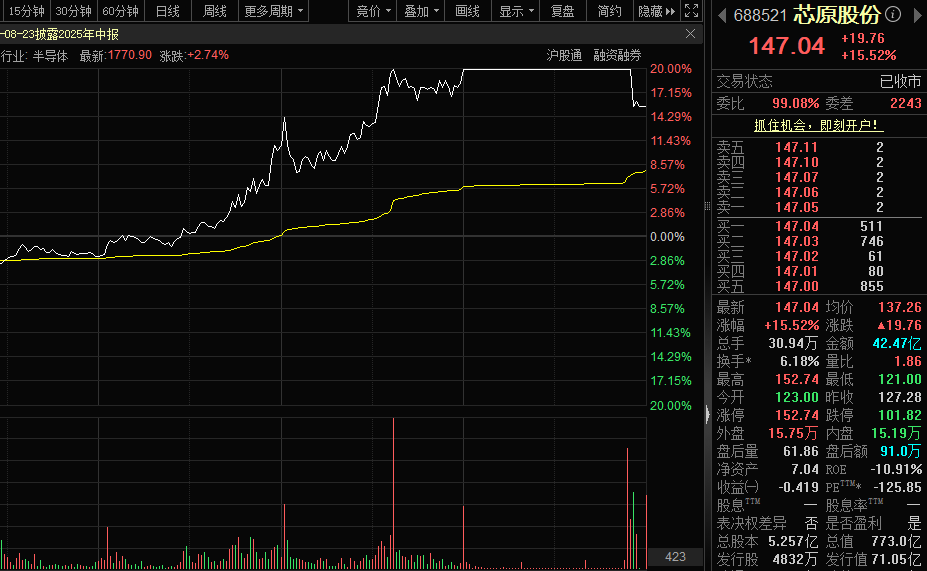 文体商旅已成为带动消费、扩大内需的“黄金组合”。芯原股份尾盘“炸板”,8月20日,半导体IP龙头芯原股份(688521)盘中一度涨停,尾盘涨幅回落至15.52%。此前有消息称字节跳动正与其联手设计AI算力芯片,但字节跳动相关负责人已否认。多地足球联赛相继开幕,2025年夏天,江苏省城市足球联赛(“苏超”)等多地联赛相继开哨,带动消费。8月19日,国家体育总局点赞“苏超”,称其带动江苏全域多场景消费380亿元。体育产业成为经济发展新亮点,产业总规模近五年年均增速超10%。低PE的体育概念股出炉,据证券时报·数据宝统计,A股市场涉及体育产业的上市公司超30家,9家公司上半年有望盈利,其中华利集团盈利最高,上半年净利润为16.64亿元。截至8月20日收盘,14只体育概念股滚动市盈率低于30倍。