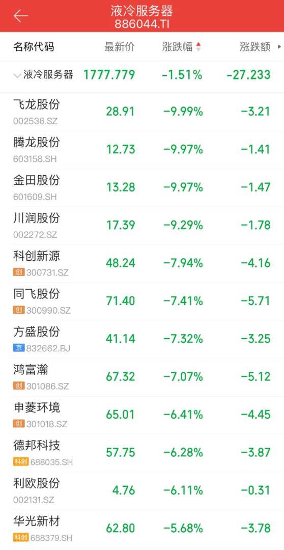 液冷板块退潮迅猛,机构仍看好液冷赛道前景