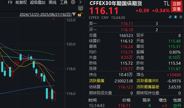 债市近期与股市呈现出显著的“负相关性”。自8月13日以来,A股交投火热,连续7个交易日成交额突破2万亿元,沪指近期冲上3700点后,仍在不断创下新高。与此同时,自8月7日以来,30年期国债期货连续调整,其中,8月18日单日大跌1.33%,10年期、5年期、2年期国债期货亦全线下跌,市场波动加剧。8月21日,30年期国债期货止跌企稳,收涨0.34%,市场出现企稳迹象。