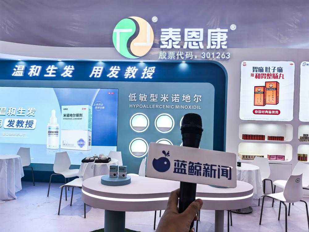 泰恩康旗下发教授品牌在现场设置展位展示旗下生发产品低敏型米诺地尔(2%米诺地尔搽剂)。据官网介绍,该产品以温和手段,让生发有效、减少刺激,为脱发人群带来新希望。