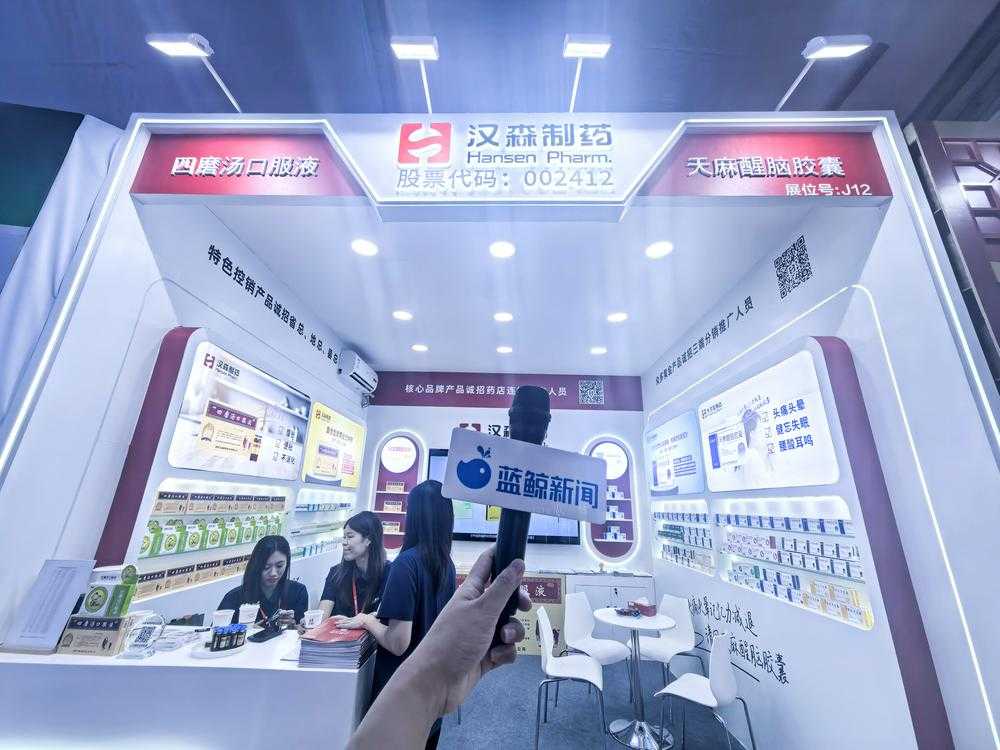 汉森制药精心打造了品牌形象与产品体验深度融合的交流空间。展台不仅集中展示了王牌产品四磨汤口服液,还带来了天麻醒脑胶囊、参七心疏胶囊等产品,展示企业特色产品。