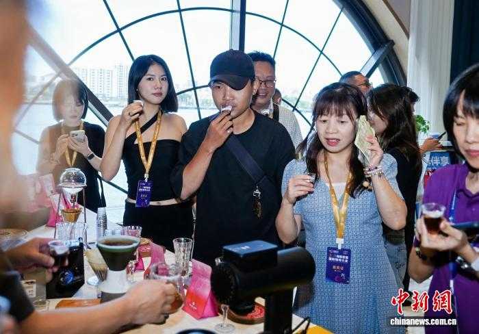 8月22日,2025海南首届国际咖啡大会现场,年轻人正品鉴咖啡。(陈茗智供图)