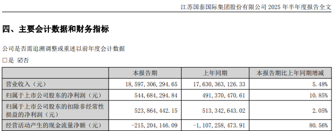 江苏国泰的主要业务有供应链服务和化工新能源业务。2025年上半年,江苏国泰的归母净利润为5.45亿元,同比增长10.85%;扣非后净利润为5.24亿元,同比增长2.05%,展现稳健增长态势。