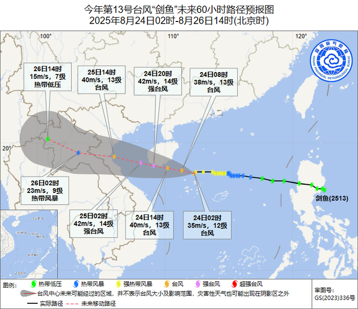 海南省气象台预计,“剑鱼”将以每小时15~20公里的速度向西偏北方向移动,强度快速增强,逐渐趋向于海南岛南部沿海,并将于24日下午到傍晚前后在海南三亚登陆(强台风级),之后趋向越南中北部沿海。台风路径、登陆时间成为公众关注的重要信息。