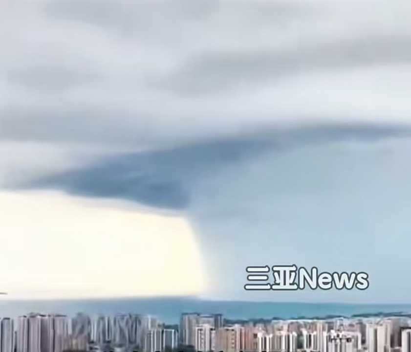 台风“剑鱼”路径调整、强度加强!日前在“剑鱼”来临前,网友在三亚天空拍下震撼一幕。