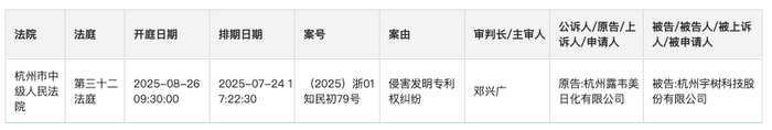 8月25日,浙江法院网显示,杭州宇树科技股份有限公司新增1条开庭公告,原告为杭州露韦美日化有限公司,案由为侵害发明专利权纠纷,该案将于8月26日在杭州市中级人民法院开庭审理,此案引发了业界对专利保护的广泛关注。专利纠纷作为知识产权领域的重要议题,不仅关乎企业的核心竞争力,更影响着行业的创新与发展。