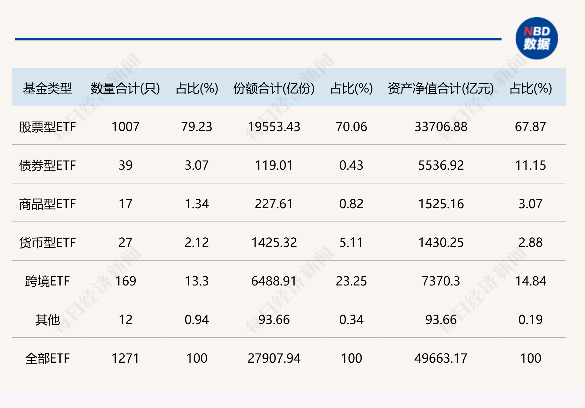 《每日经济新闻》记者注意到,近段时间以来,随着股市上涨和资金借道ETF入市,权益类ETF规模强势增长。包括股票型ETF和跨境ETF在内,今年以来权益类ETF增长将近8000亿元,最新规模已突破4万亿元关口,创下历史纪录。另外,债券型ETF也在今年获得了长足的发展。截至去年年底,全市场债券ETF总规模为1739.73亿元,但今年的最新规模已经达到5536.92亿元(截至8月22日),增幅达到惊人的218.26%。其中,一个月前刚刚上市的首批科创债ETF总规模已突破千亿元,第二批产品也在近期集中上报,也就是说还有“弹药”正在等待入市,发展势头迅猛。
