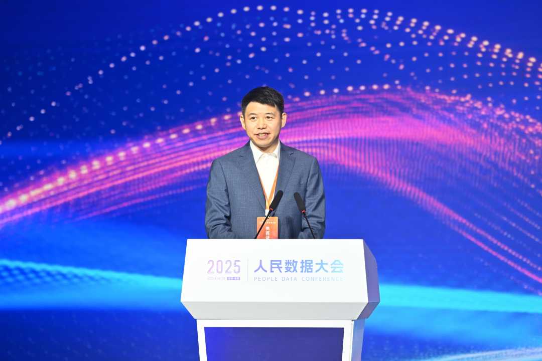 上海东航数字科技有限公司总经理上官雪民在2025人民数据大会发表主旨演讲。人民网记者翁奇羽摄