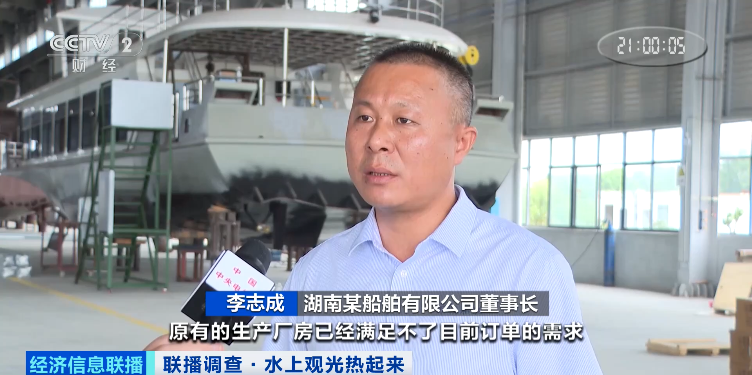 湖南某船舶有限公司董事长李志成:原有的生产厂房已经满足不了目前订单的需求,经过半年的改造达到了年产值2亿元生产厂房的条件。今年以来,截至7月份,公司订单达到1.2亿元,用于观光旅游的船艇占比90%,新能源订单船艇数量达到了80%以上。