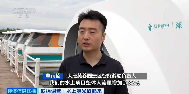 大唐芙蓉园景区智能游船负责人董雨楠:自智能游船投入运营以来,我们的水上项目整体人流量增加了32%,其运营成本是传统游船的三分之一,科技赋能成效显著。