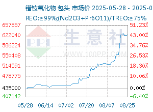 记者注意到,根据生意社的数据,稀土类产品7月以来的价格仍在持续上涨,甚至有加速趋势。截至8月25日,包头镨钕氧化物的价格已经从7月初的43.5万元/吨涨到了62.2万元/吨,涨幅超过40%,稀土价格涨势强劲。