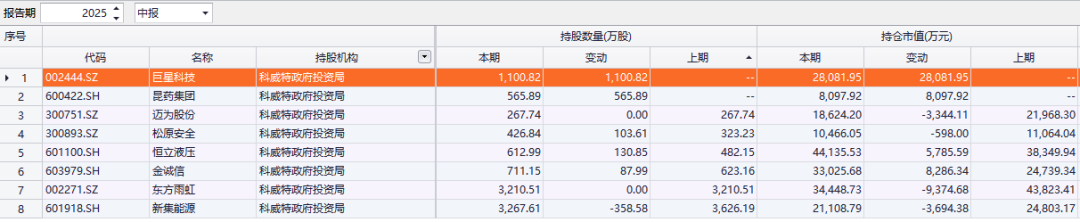 科威特政府投资局持有8只A股,持股数量为1亿股,持股市值为19.8亿元。其中,科威特政府投资局持有新集能源、东方雨虹和巨星科技的数量分别为3267.61万股、3210.51万股、1100.82万股。今年二季度,科威特政府投资局新进了巨星科技和昆药集团前十大流通股股东名单。