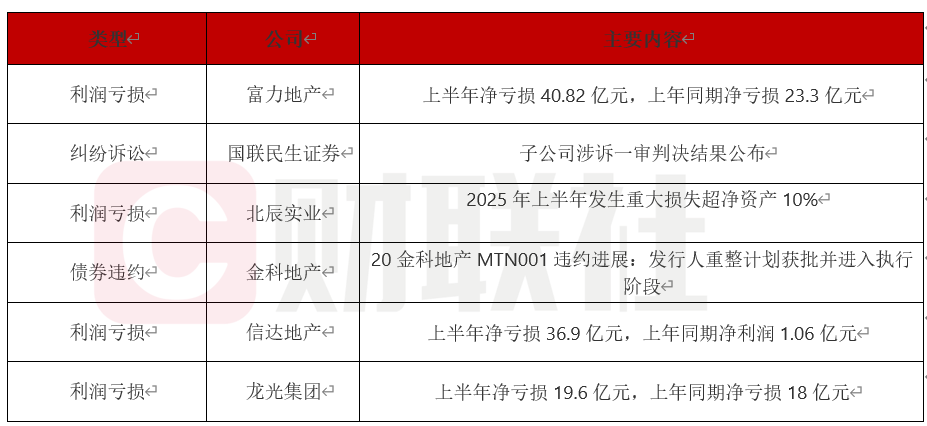 2025年上半年,富力地产、北辰实业、信达地产等企业财报显示净亏损扩大,房地产行业持续低迷致收入下降。国联民生证券涉诉,金科地产重整计划获批。龙光集团净亏损19.6亿元,行业调整压力下企业盈利与偿债能力面临挑战。