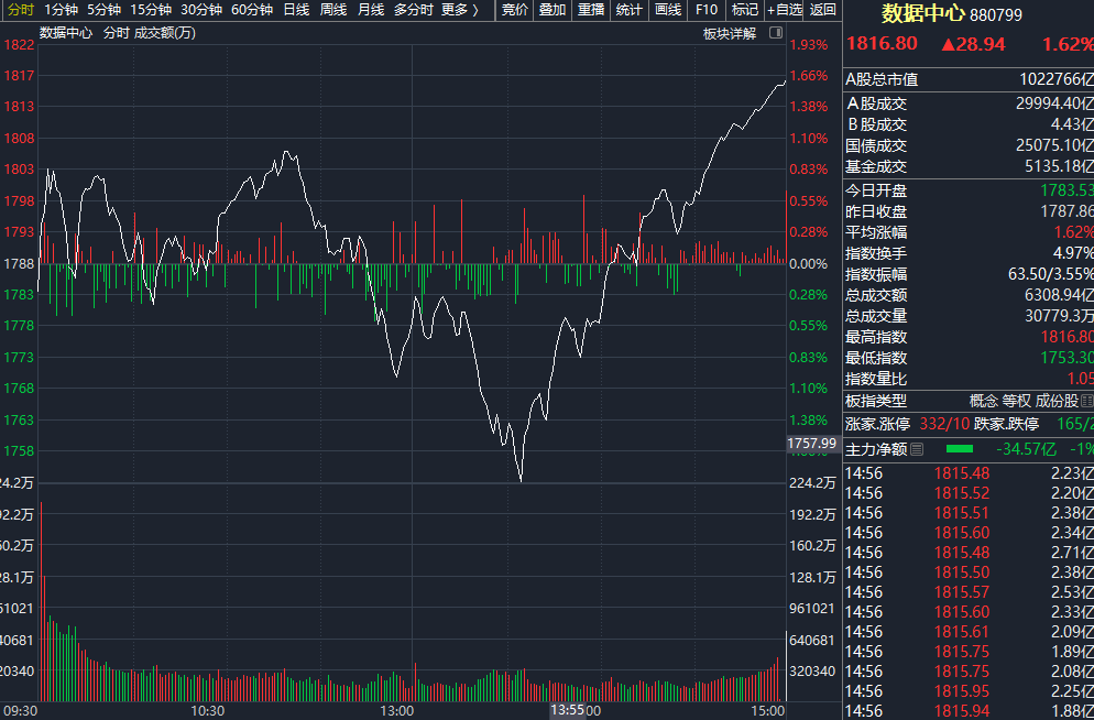 数据产业迎政策红利,人工智能+驱动数据中心板块大涨
