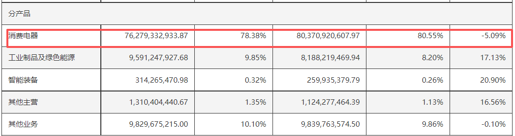分产品来看,格力电器失速的主要原因,正是占主营收入近八成的消费电器业务(以空调为主)低迷,出现了5.09%的负增长;而占比约一成的“工业制品及绿色能源”还有17.13%的正增长,其他几块业务如智能装备(主要是工业机器人)有20%的增长,但占比极小,不到1%,对总盘带动作用有限。产品结构的差异成为业绩分化的关键因素。