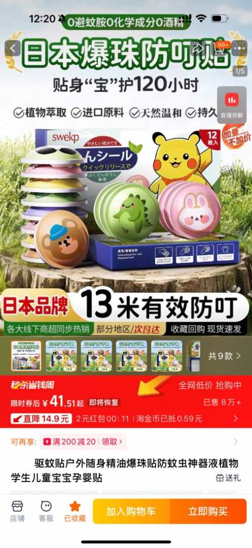 8月28日,记者回访发现德敏舒婴儿香茅防护喷雾已下架,swekp植物精油爆珠贴被立案调查。两款产品均无农药登记证却宣称驱蚊功效,引发市场关注。市场监管部门已介入,其他类似产品仍在正常销售。